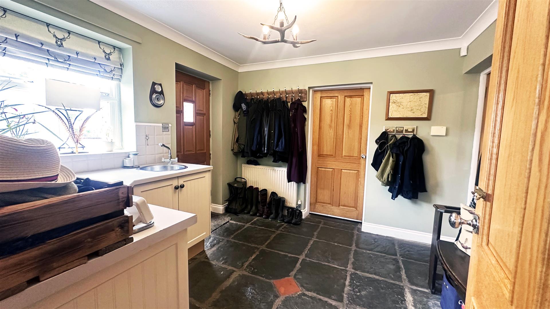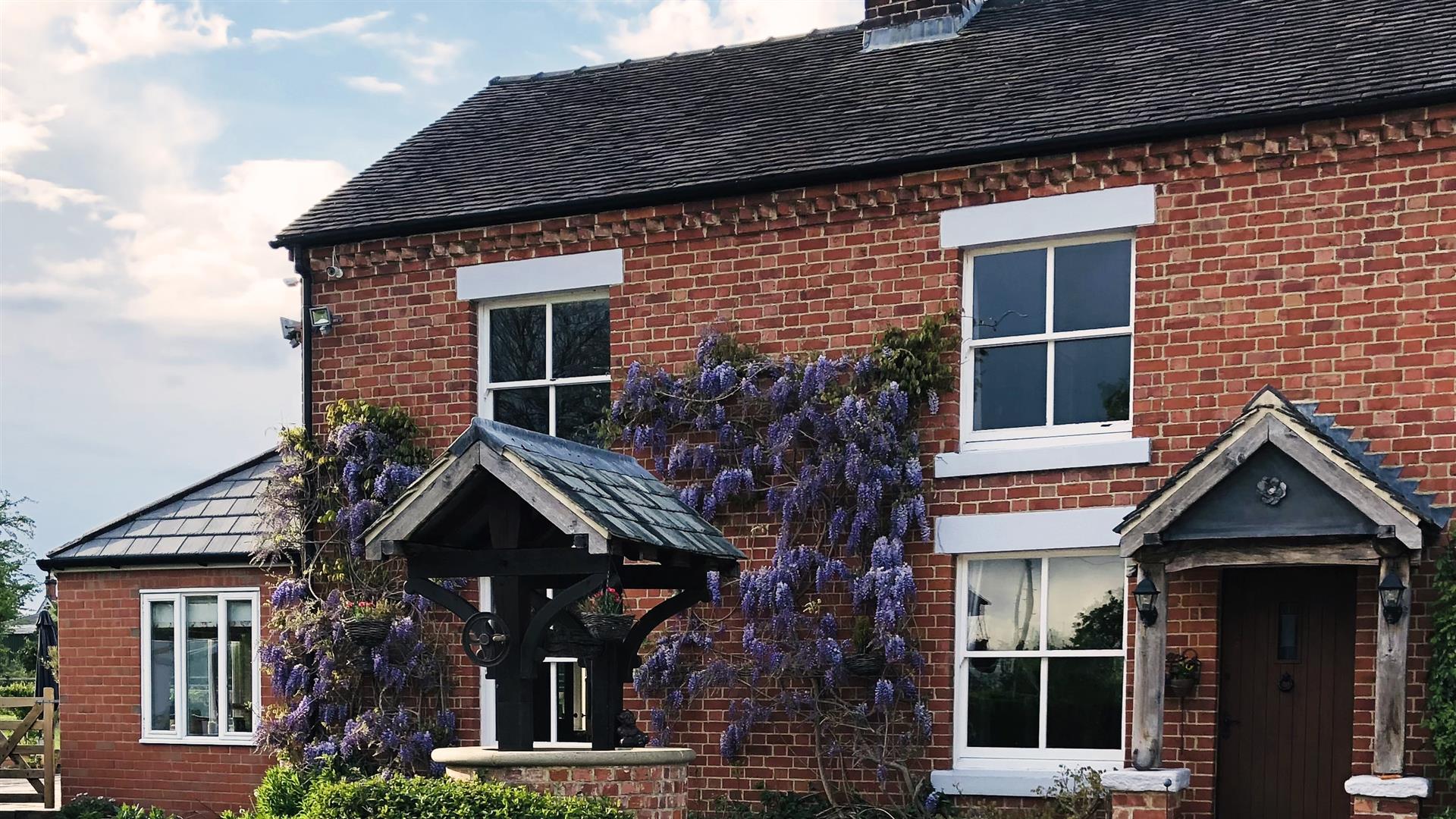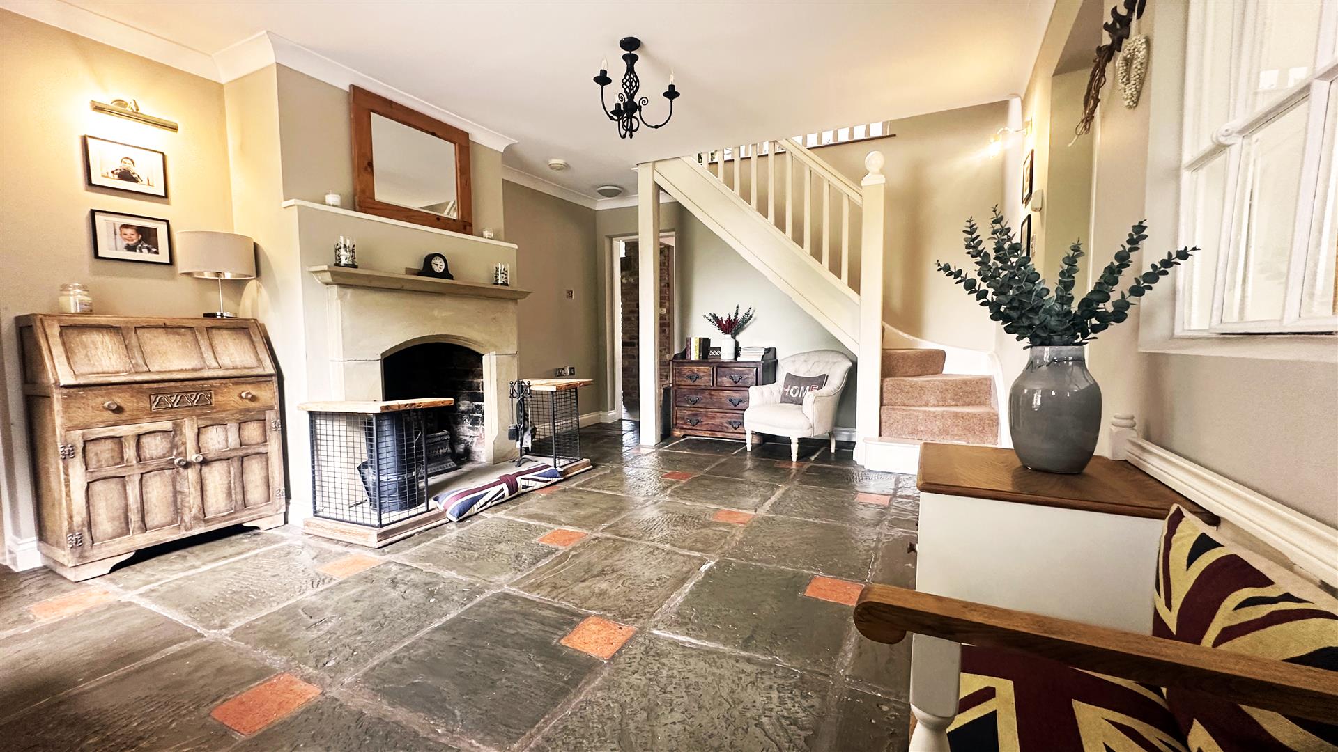 The Woodyard is an exceptionally charming and versatile five bedroomed property, finished to a high specification. The Woodyard is an exceptional property, nestled within the popular village of Doveridge in Derbyshire. The property has undergone a significant transformation, retaining a wealth of original charm and finished to a high specification throughout .The locality provides the opportunity for village living, with convenient access to major road networks for commuters. A gated sweeping driveway leads to ample parking and a second set of electric gates for access to the rear double garage / annexe. The house is accessed through an oak timber built porch, leading to the reception hallway; with reclaimed stone, tiled flooring, open fire and sash window. The reception hallway leads to the snug, living room, kitchen and dining room. The breathtaking kitchen has been recently renovated to a high specification; comprising German built kitchen units and granite worktops. The kitchen includes an exceptionally large island, stone floors and integrated appliances. The kitchen also features a living area, currently used for dining and additional cosy seating. Flowing on from the kitchen is a dining room, a host’s dream; seating up to 14 people, and featuring patio doors to the rear of the property. The living room provides a tranquil space with views to the front of the property and an exquisite feature marble fireplace. The snug offers the versatile opportunity for